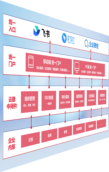 对协作平台提供支持服务,,支持企业应用与协作平台对接,,,包含组织同步、、、、消息集成、、、待办集成等。。。支持目前主流的协作平台:钉钉、、、、企微和飞书。。。