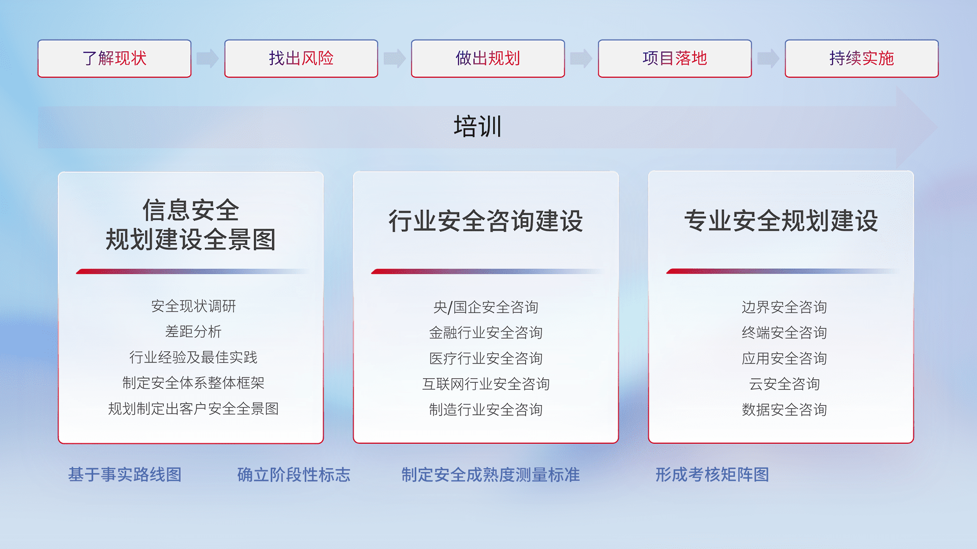 梳理客户信息安全现状调研、、、差距分析结果,,,,结合行业先进经验及最佳实践,,,,制订客户的信息安全管控体系总结架构,,,,最终形成一个完整的客户信息安全规划与建设的全景图。。