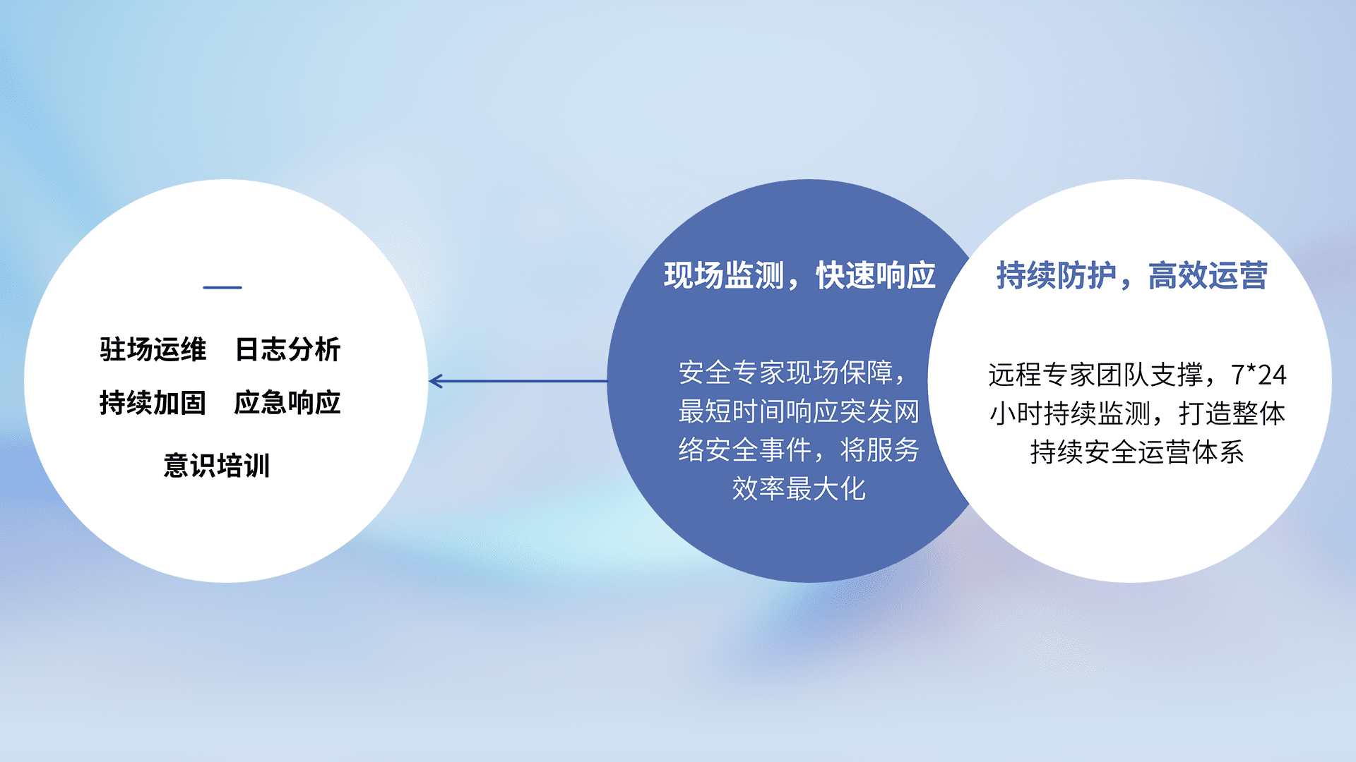 针对客户行业特性,,,提供专属的一站式安全管理服务,,,,帮助客户全面感知网络空间威胁,,,通过安全专家的线上、、、、线下防护支持,,,实现风险闭环,,将安全保障常态化,,,为客户打造常态化安全运维运营服务。。。